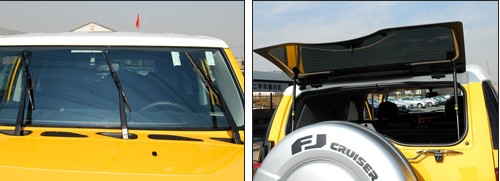 这款大玩具也有很多贴心的地方,像带有橡胶颗粒的搭板、可独立可启的尾窗、三组雨刷等。离地间隙有245mm、698毫米的涉水深度,都将FJ提升至标准的超值越野车行列。
