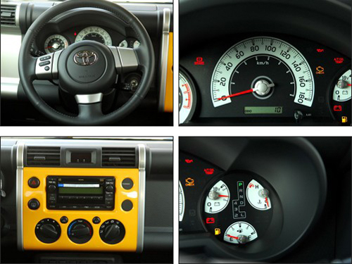 车内座椅均以全部座椅均以防水布料制成,其中驾驶座有8向、副驾驶座有4向的座椅调节系统。车内空间因为很高的台阶和相对狭窄的后车门,但是前部座椅能够在必要时向前折叠以改进这一状况。一旦落入后座,乘客会发现拥有充足的空间,但腿部空间会占据储物空间的位置。当所有厂家注重开发新车型和舒适性时,FJ酷路泽早把目光转移到车内的音响装置---独特的顶置扬声器,全车配置九个喇叭,加上仪表板和D支柱上的高频扬声器,都可以产生无方向性的声音场。