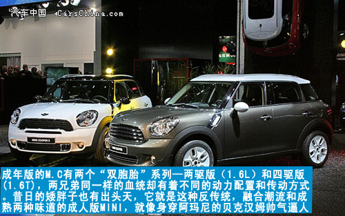 现在,MINI家族中迎来首款跨界车型---Mini Countryman(简称:M.C),作为总动员的头领,它车身长度超过4米、四车门、装备四轮驱动系统、不再是以前的花哨小子,脱下HITHOP的T-SHIRT,穿上的西服正式搭入“成年人”步伐。