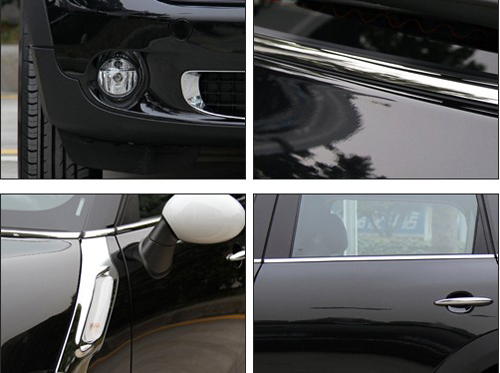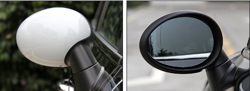 拉长过的车侧身和圆润的线条看起来比前脸和谐得多。四门座的车身并没有多余的装饰,侧裙和轮眉同样得到很好地保护。另外,鹅蛋形的后视镜采用与车身异色设计,充分体现M.C的魅力。