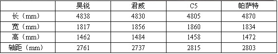 设计虽然是感性的,但其中的“车身尺寸”是能用字数表现出来的。这四款车里只有全新帕萨特是今年新上市的,且刚刚上市不久,从新帕萨特的车长和轴距就能看出中级车有越做越长的趋势。这四款车从数据上看,C5的轴距最长,或许会给人第一感觉就是C5的后排空间最大,但实际上,这种仅靠看数字来判断空间的方法并不准确。因为品牌不同,车厢结构及设计也是不同的,所以数字并不能代表真实的车内空间。事实也是如此,虽然C5轴距最长,但是经过实际乘坐,我们发现它在空间上并没有特别明显的优势;反而是看似“中规中矩”的昊锐,在乘坐感受上会有不小惊喜,这个“惊喜”留待编辑在空间对比环节为大家揭晓。