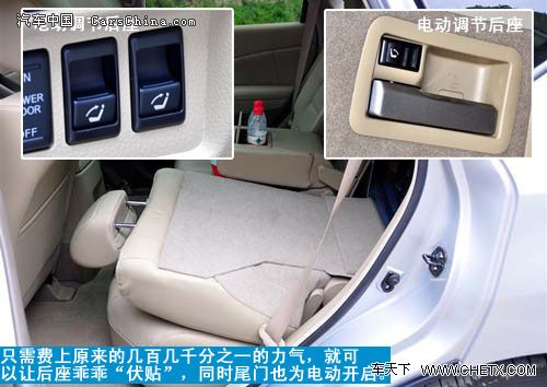 其它细节设置也是挺不错的,比如无钥匙启动按键旁的带夜光钥匙插孔、后座还可以通过拉手调节座椅的倾斜角度,虽然不甚高科技,但聊胜于无。