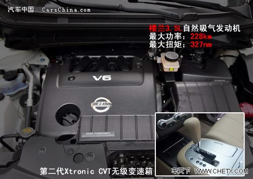 楼兰上市时暂时仅提供一款3.5L排量的发动机可选择,不过有理由相信为了与汉兰达拥有更为直接的对抗,不排除会引进更多的发动机选择。这款3.5L的双凸轮轴V6引擎,最大功率228KW,最大扭矩327Nm。与其搭配的将是第二代Xtronic CVT无级变速箱。相比汉兰达3.5L发动机最大功率201KW的数据,确实有一定的优势,不过汉兰达的扭矩却比楼兰大了10Nm。以此可见,楼兰更注重的是持续的加速能力。不过,由于6速CVT变速箱的使用,虽然能节省不少的油耗,但作为代价的就是牺牲了驾驶乐趣。几乎无顿挫感的换挡,让驾驶员有些昏昏欲睡之感。