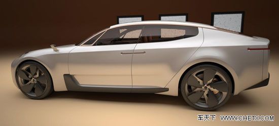 起亚概念车的侧面,无论是车顶、腰线还是底裙部分,均采用了平直的线条勾勒,这样的效果一方面让该车有着修长的视觉效果,另一方面也显出一定的肌肉感。那五幅的轮毂采用双层扇叶式设计,动感十足。