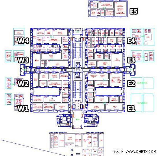 以上平面图中轴线左侧由下而上为W1(报价 参数 图片 论坛)-W4馆,右侧为E1-E4馆,E5馆在右上方位置