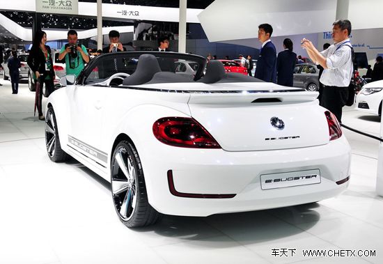 该车的前端采用了后掠式设计,宽大、醒目的风挡玻璃向两侧延伸至A柱上方。配备LED大灯的E-Bugster另一个独到之处就是采用了量产甲壳虫(报价 参数 图片 论坛)高度定制化的保险杠:设计师将日间行车灯集成在中央进气口左右两侧,LED灯组呈"C"字形排布(右侧呈反向的"C"字造型)。