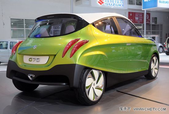 铃木G70概念车是一款全球战略性小型轿车,其整体造型极具个性。绿色的车身主色调将环保节能的主题得以突出。车身尺寸方面,该车的长宽高分别为3550mm*1630mm*1430mm,轴距为2425mm。