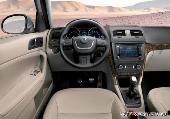虽然Yeti的外观设计非常时尚,但在内饰上却保持了斯柯达一贯的低调风格,与现款的明锐(报价 参数 图片 论坛)基本一致。这种情况在上汽的车型上也并不鲜见,MG6(报价 参数 图片 论坛)的内外差距也反映了这样的不协调。Yeti的内饰采用上深下浅的颜色搭配,YETI的中控台设计分工明确,按钮简单、操作方便易懂。中控台上半部分为多媒体控制区域,液晶显示屏可集成GPS功能。而下半部分为空调控制区,三个主要旋钮从左至右依次控制温度、风速和送风模式。配置方面,全景天窗、自动空调、DVD导航、前后泊车雷达、ESP系统、头部安全气帘等配置,都可以在配置单中找到。