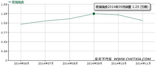 瑞虎(报价 参数 图片 论坛)3为瑞虎5(报价 参数 图片 论坛)的升级产品,去年6月上市,上市之初让不少用户很是期待产品升级的效果,市场反应良好。9月以12877台的实销量荣登当月小型SUV销量的冠军。如下方瑞虎3的销量走势图所示,瑞虎3的销量在9月之后呈现下降的态势,但每月销量成绩还是维持在1万台左右。那么这款车作为新年购车的一个选项,到底有何优势,一起来看下。