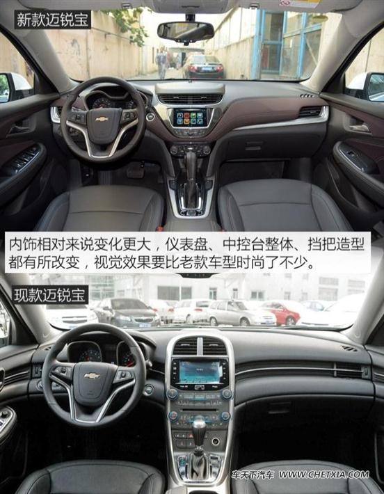 和外观相比,新款迈锐宝的内饰变化更加彻底,可以看到新车在车内氛围上完全趋向于新的家族化风格,和全新科鲁兹(报价 参数 图片 论坛)如出一辙,相比现款车型少了些许粗犷和运动,多了一份家居和时尚。大量硬塑料、织物和皮革材质的交错使用让中控台看起来层次分明,而现款车型则是完全的搪塑工艺,因为做工出色,所以质感上都有保证,谈不上哪个更厚道。