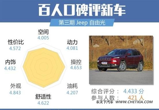 ● 广汽菲克jeep自由光性价比评分:4.572分