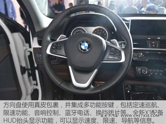 在配置方面,全新x1全系标配全景天窗,后部驻车距离报警器,防爆轮胎,多功能运动型真皮方向盘,带有电动折叠、加热、驻车辅助和记忆功能的外后视镜等配置,除入门级车型外,其余车型还配备有自动泊车辅助系统、后备厢门自动开闭、前排座椅加热等功能。车道偏离预警、行人碰撞防护等配置仅在顶配车型上出现。