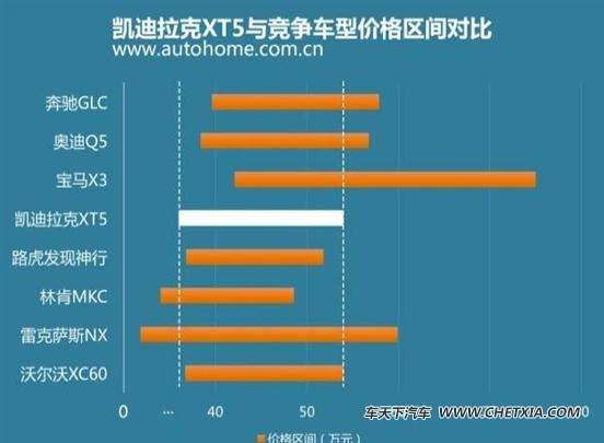 首先对比豪华品牌第一集团的奔驰、宝马、奥迪,可以看出xt5的售价整体上是偏低的。鉴于凯迪拉克的品牌影响力无法与“bba”相比,售价偏低也是正常现象。接着我们对比一下xt5与除奔驰、宝马、奥迪以外的其他豪华品牌相应车型的售价。我们可以看到它的起售价在这些车型中并不算低,而其顶配车型的售价也仅仅低于雷克萨斯nx,也就是说这款车的售价在第二集团豪华品牌中属于偏高的,相信这也是其售价接受度不高的原因(上述“第一集团”、“第二集团”皆参考销量成绩)。
