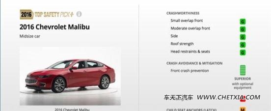 IIHS碰撞成绩:雪佛兰迈锐宝获“优+”