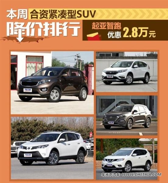 智跑优惠2.8万 本周紧凑型SUV降价排行