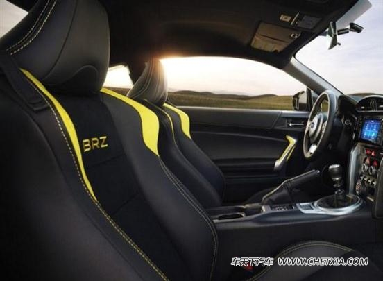 内饰方面,新车内部整体采用了黑色配色,并在中控台、座椅及方向盘等部位融入了黄色缝线,同时,该车座椅采用了真皮以及alcantara材质包裹,亮黄色的brz刺绣标识也体现了其特别版车型的身份。