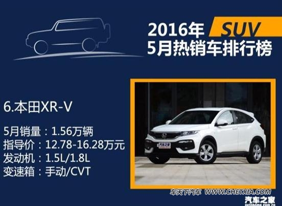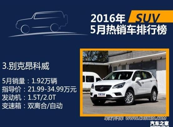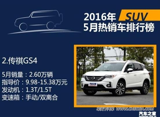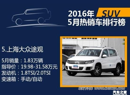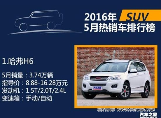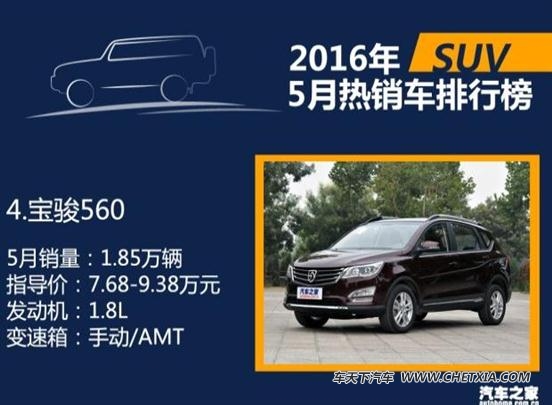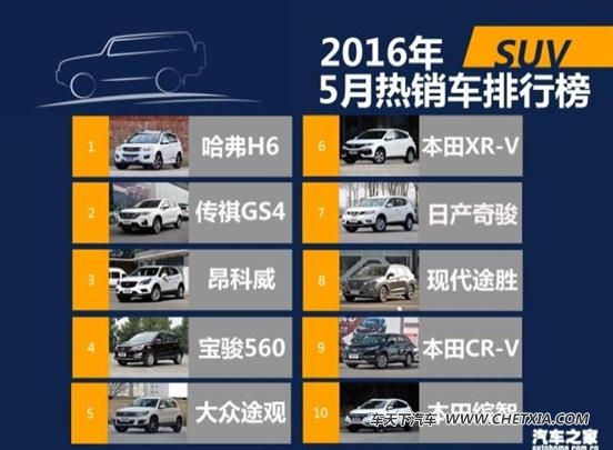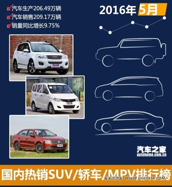 2016年5月国内热销SUV/轿车/MPV排行榜