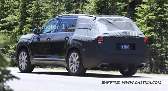 而在车身方面,新车的腰线采用了大众家族一贯的硬朗设计,并在前后轮眉进行了上扬突出整体的肌肉感。从其长度判断,新车内部很有可能采用三排座椅布局。