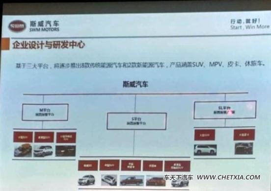 未来斯威汽车将基于旗下三大平台进行开发,包括m平台、s平台和sl平台,未来将逐步推出10款车型,并涵盖传统能源与新能源汽车,同时产品类型将包括suv、mpv、皮卡和休旅车型。