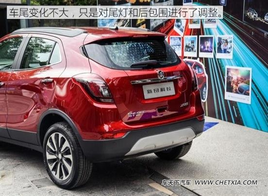 内饰方面,新车仪表盘采用了新的样式,高配车型还配有一块4.2英寸显示屏,新车中控还采用了7英寸显示屏。配置方面,新款昂科拉标配行李架、防夹电动天窗、外后视镜电动调节/电加热、无骨雨刮、led日行灯,高配则享有led尾灯、车窗镀铬条、前/后防擦护板等。