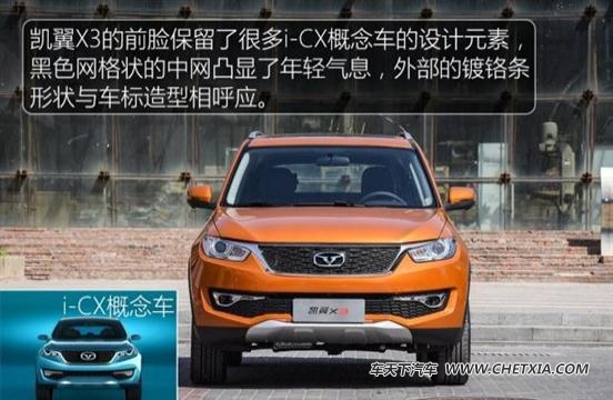 凯翼x3是一款个性十分鲜明的小型suv,它并没有用传统的方式与对手展开竞争,而是从设计上入手,吸引年轻消费者,然后通过车内的一些智能互联配置来打动消费者,还是很有卖点的。不过在空间表现一般、动力方面并无亮点点的情况下,凯翼x3想要在众多车型中杀出一片血路并非易事,让我们拭目以待吧。