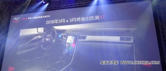 凯翼x7的推出将在x5之前,预计在2018年的上半年和消费者见面,新车预计定位在中型suv,采用7座的布局。从公布的图片来看,其中控采用了大尺寸液晶屏,看上去很有科技感。