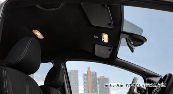 该车内饰同样被黑色充斥,其座椅为绒布材质包裹,并融入了白色缝线。此外这款车可提供丰富的选装配件,其中包括触屏信息娱乐系统、无钥匙进入、自动头灯、自动雨刷、自动空调等装备。