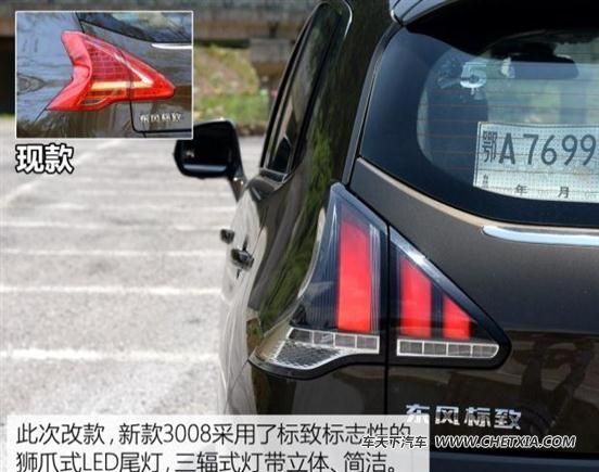 新款车型对轮圈也进行了升级,加入了装饰线条,并采用双色设计,更加时尚。要想从尾部识别这款车,只需要观察它的尾灯,新款3008采用了全新的led尾灯,相比于现款车型的设计要更加上档次。