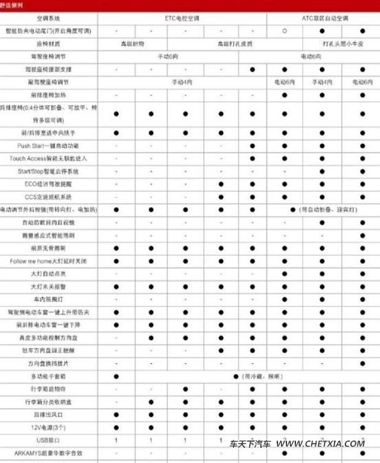 其中最低配1.5t手动精英型相比其他配置车型减少后倒车雷达、真皮多功能方向盘、行李厢分类收纳盒、并采用16英寸钢制轮圈。