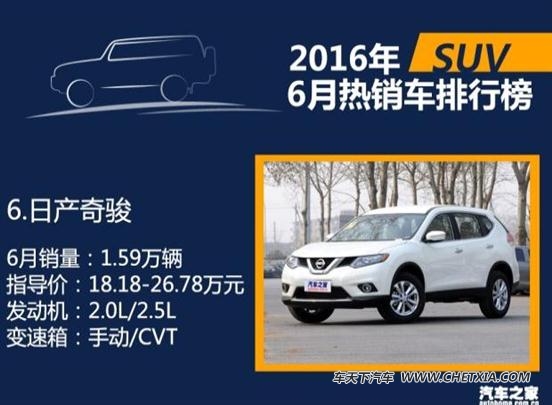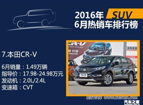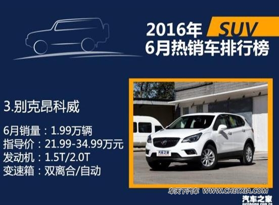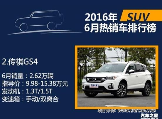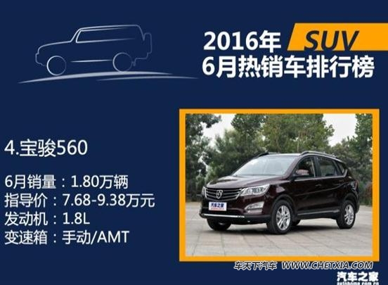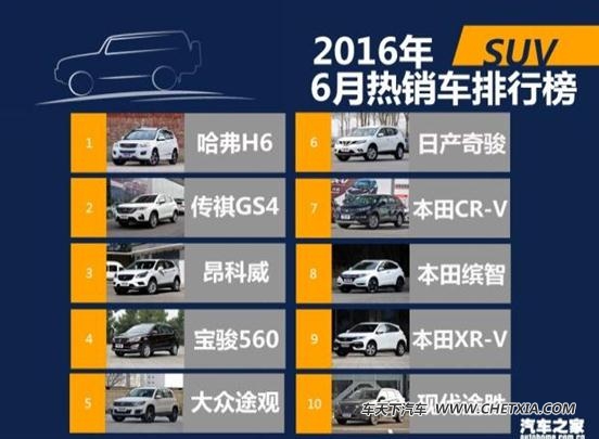 车天下 > 汽车资讯 > 滚动资讯 > 2016年6月国内热销SUV/轿车/MPV排行榜