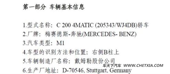 [导读] [车天下新闻]在最新一期的环保目录中,我们发现了奔驰c2004matic车型的身影,其底盘代号为205343/wj4db,而这则代表了其是一款进口c200四驱轿跑版车型。