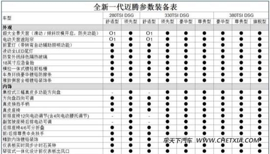 标配丰富 大众全新迈腾部分配置曝光