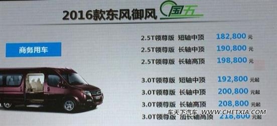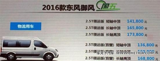 | 2016款东风御风 国ⅴ车型 指导售价 |