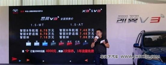 日前,凯翼官方正式公布了凯翼v3的预售价区间为6.78-7.88万