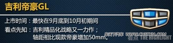 帝豪gl由吉利汽车设计高级副总裁彼得·霍布里率领的国际团队打造,作为吉利精品化车型的又一款力作,新车最快在9月底到10月初期间正式上市。