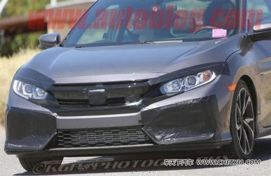 车头部分,新思域si coupe的前进气格栅与前保险杠被加以伪装。新车的下部进气口换用了蜂窝网状格栅,其尺寸相比普通版车型更大,可以直接看到内部的中央冷却器。通过前保险杠的轮廓我们可以推断,新车保险杠两侧雾灯处进行了重新设计,此处或将设有一个尺寸较大的进气口。
