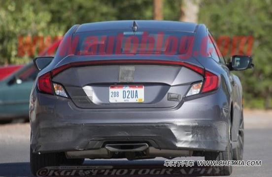 车尾部分,新车的后保险杠覆盖有伪装,而新车最大的变化在于采用了外露式中置排气口,替换了普通版车型上的隐藏式双边共两出排气布局。这一设计与此前曝光的新一代思域type r谍照车型类似,但二者排气口造型不同。另外,现款车型后保险杠下部的仿散热孔造型或同样有所调整。