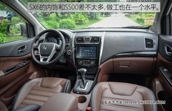 进入车内,sx6的内饰风格与外观同样踏实、简洁,布局上没有太过花哨的设计,做工和用料追求简单实用,挑不出什么毛病但也没有惊喜。中控台的多媒体系统必不可少,具备蓝牙、导航、手机互联等功能,ui设计风格轻松,根据试驾同事反馈,该触摸屏的反应速度还可以,显示界面清晰。