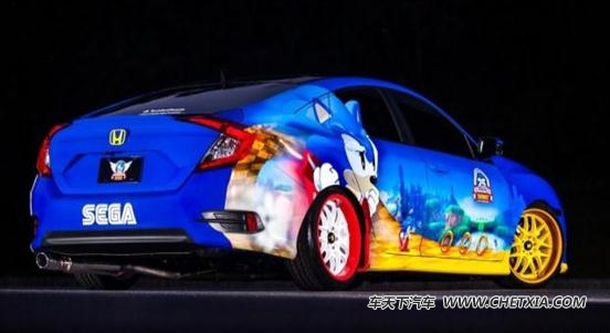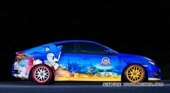 新车采用了与索尼克相同的蓝色车身涂装,并在车身侧面喷绘了游戏画面和索尼克人物形象,前车门处还有游戏发售25周年的纪念徽章。另外,该车前轮采用黄色喷漆,意在代表游戏中可以加分的金戒指,而后轮红白两色的喷漆则是代表索尼克的红白色运动鞋。此外,为了配合索尼克所拥有的高速属性,全新思域索尼克纪念版专门调低了车身。